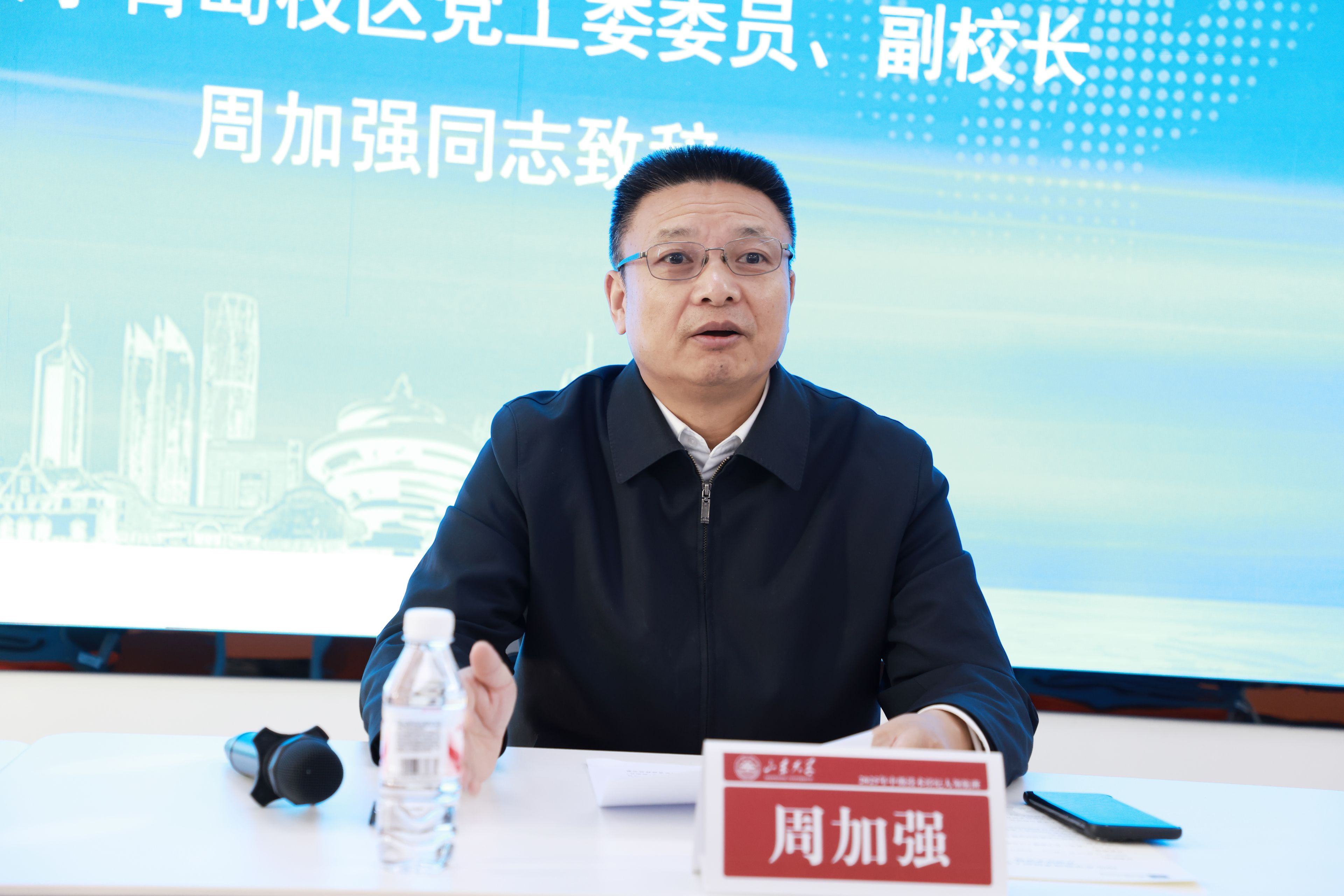 青岛校区党工委委员、副校长周加强,青岛市工业技术研究院院长、海洋科技大市场负责人滕云枫出席开班仪式并讲话。