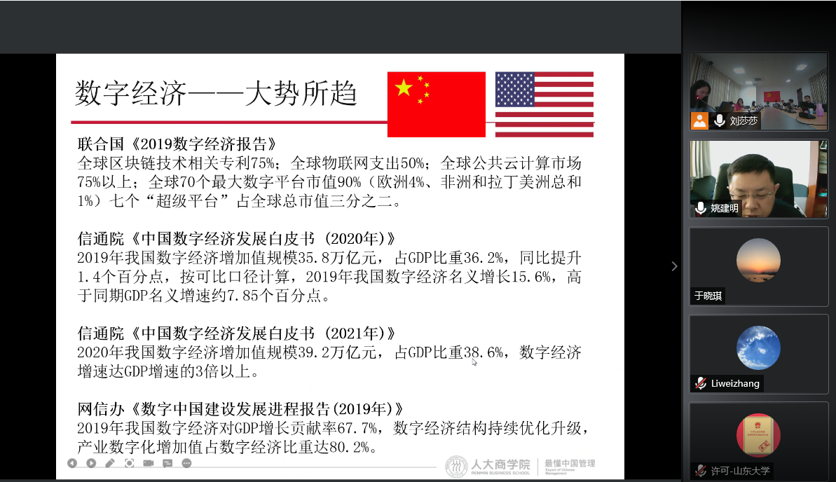 教师与姚教授进行了深入互动,在供应链管理、创新管理、企业数字化转型、人工智能等方面进行了深入交流,碰撞出了很多有价值、有启发性的新观点。