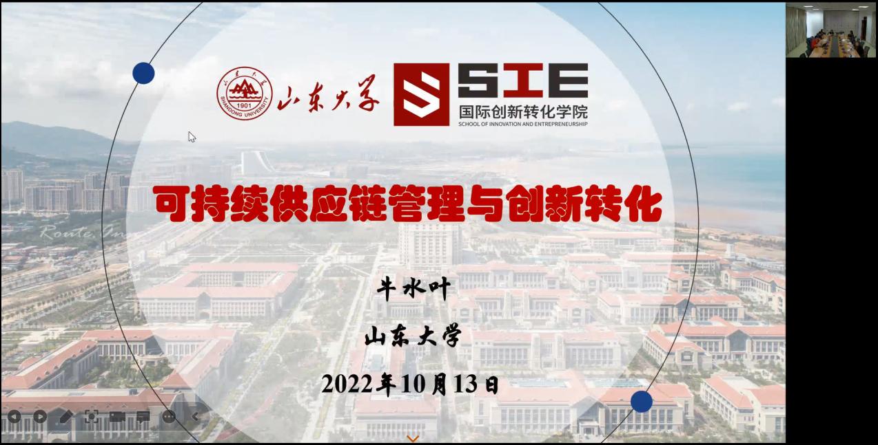 牛水叶就“科研领域与前期研究”、“关于供应链与创新链的认识”和“跨学科合作研究期望”三个模块的内容做了系统汇报。首先,牛水叶介绍了“可持续供应链管理”的理论研究进展与实践发展进程,并结合自身学术研究和科研项目分享了在该领域的研究成果。之后阐述了关于供应链与创新链的认识,认为二者存在结构相似性、理论一致性和研究范式相似性,可以将供应链管理相对成熟的理论及方法融入到创新链的研究之中,助力韩国主播