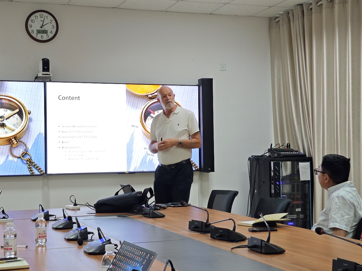 在讲座中,Tony Raven教授深入探讨了技术转移领域的多个关键方面,强调了地域性差异的重要性,并指出了实践中因地制宜的必要性。他特别指出,不同国家和地区在技术转移上的做法存在显著差异,这要求每个地区都需要根据自身的具体情况来制定相应的策略。TonyRaven教授还讨论了科学研究与经济发展之间的紧密联系,尤其是深度科技研究如何推动经济增长。此外,他提出了围绕大学建立创新与投资生态系统的重要性,并强调了投资者在技术市场化过程中的关键角色,讲座中还探讨了大学衍生公司的运作方式和股权分配问题,强调合理的股权分配对于激励创新的重要性。最后,TonyRaven教授分析了政策如何影响技术转移,并鼓励大学根据自身优势进行定位,以实现自主选择最适合自己的发展路径。此次讲座为参与者提供了一个全面了解技术转移实践及其对经济发展影响的宝贵机会。